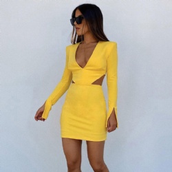 Wholesale fashion autumn and winter elegant casual Autumn hollow out cut out dress