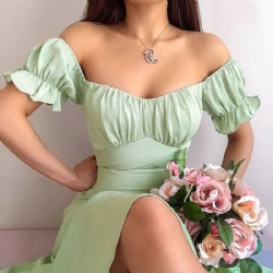 Mid-length Dress Avant-garde Sexy Casual Solid Color Simple One-shoulder Short-sleeved Fashion Slim Woman Nightclub Dinner Wear
