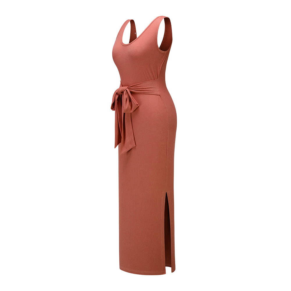 Ladies Spring Summer Casual V- Neck Bright Color Sleeveless Sexy Bodycon One Piece Women Dresses