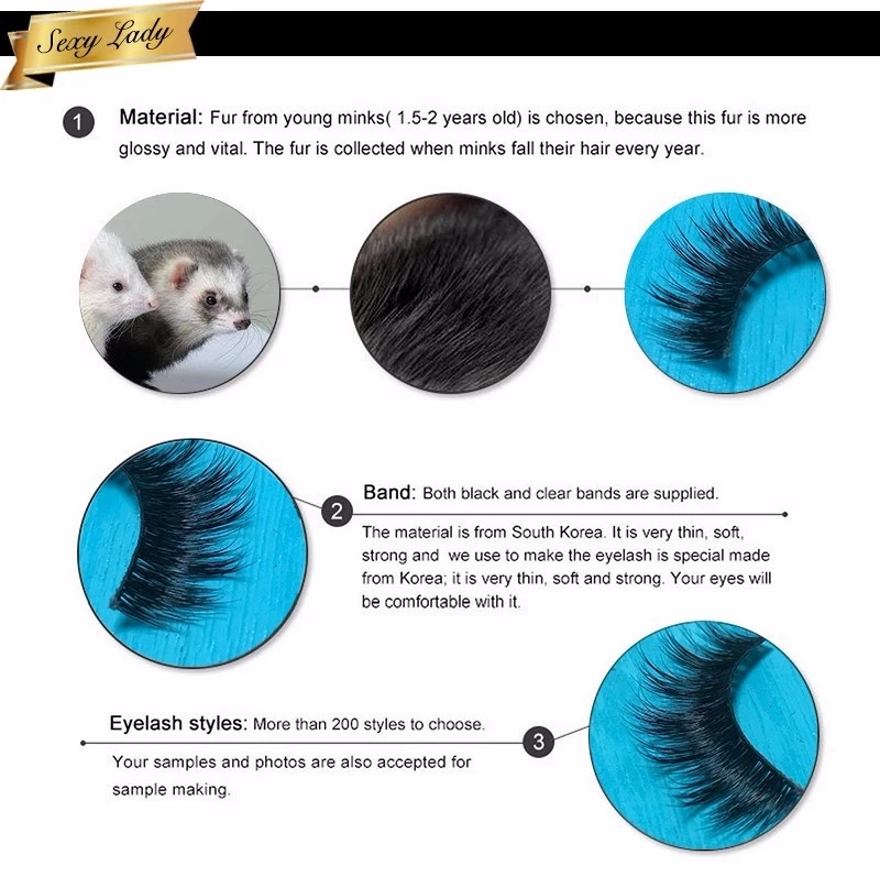 Our 3D mink eyelashes are made of 100% natural mink fur. These eyelashes are made from individually selected mink fur hairs that have been harvested by gently brushing live animals from Siberian, Russia. In this process, no animals will be harmed. These 3D mink lashes are 100% handmade, no chemically treated or dyed,they are rich and velvet like appearance found in mink fur is totally maintained.these mink lashes are the softest hairs around the world.